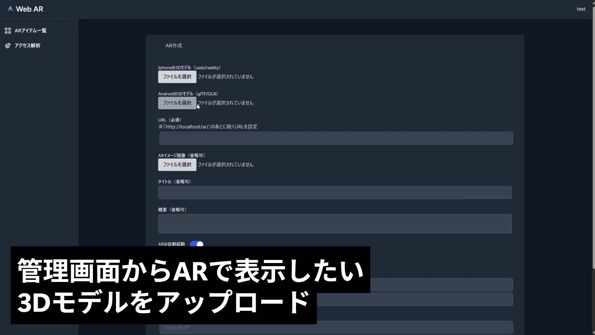 - URL発行・有効期限設定・自動AR表示機能を実装